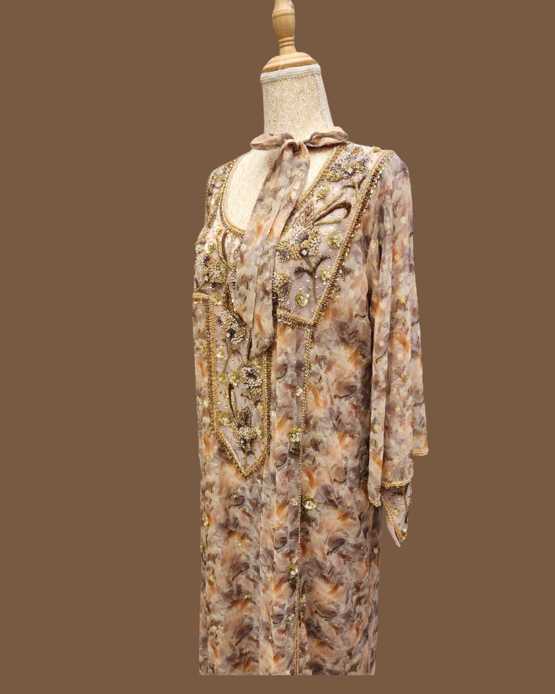 Indulge in timeless luxury with our Mkhaweer, thoughtfully made to order using premium custom-print materials. Designed to blend elegance with all-day comfort, this piece is tailored for a graceful and flattering fit.