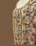 Expertly handcrafted, the fabric features 3D floral detailing, YHB crystals, and intricate handwork, adding depth, sparkle, and refined sophistication. Elevate your wardrobe with a statement Mkhaweer that reflects exceptional craftsmanship and style.