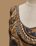 Expertly handcrafted, the fabric features 3D floral detailing, YHB crystals, and intricate handwork, adding depth, sparkle, and refined sophistication. Elevate your wardrobe with a statement Mkhaweer that reflects exceptional craftsmanship and style.